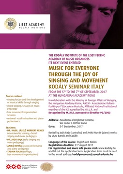 Kodály Seminar in Rome - September 5-7, 2017