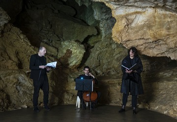 Concert at Szemlőhegy Cave in Budapest, with Trio Passacaglia: Judi Rajk and László Kéringer (voice), Tamás Zétényi (Cello) - August 29, 2021 - Photo: Lenke Szilágyi