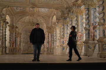On tour in Bohemia - sound check on the stage of the Baroque Theatre in Cesky Krumlov, with bariton Zoltán Mizsei - April 2018 (photo: Borbála Déri, Franz Liszt Music Academy, Budapest)
