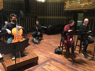 Péter Tornyai’s Dixit - rehearsal with Tamás Zétényi (cello) and László Kéringer (voice) - Music Academy, Grand Hall in Budapest, February 7, 2021