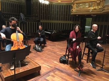 Péter Tornyai’s Dixit - rehearsal with Tamás Zétényi (cello) and László Kéringer (voice) - Music Academy, Grand Hall in Budapest, February 7, 2021