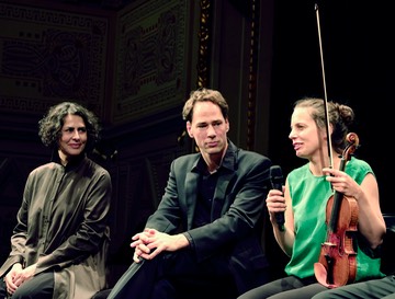 Podium discussion with the Berlin Philharmonic Chamber Soloists - with Cornelia Gartemann (violin) and Knut Weber (cello) - in the Solti Hall of the Franz Liszt Academy of Music in Budapest - September 28, 2018 (photo: Zeneakadémia, András Bánkuti)
