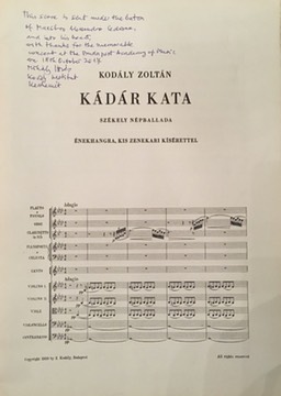 The score of Kata Kadar, originally published by Kodaly himself in 1950. This copy was given and dedicated to maestro Alessandro Cedrone by Mihály Ittzés, Head of the Kodály Archive (October 18, 2017)